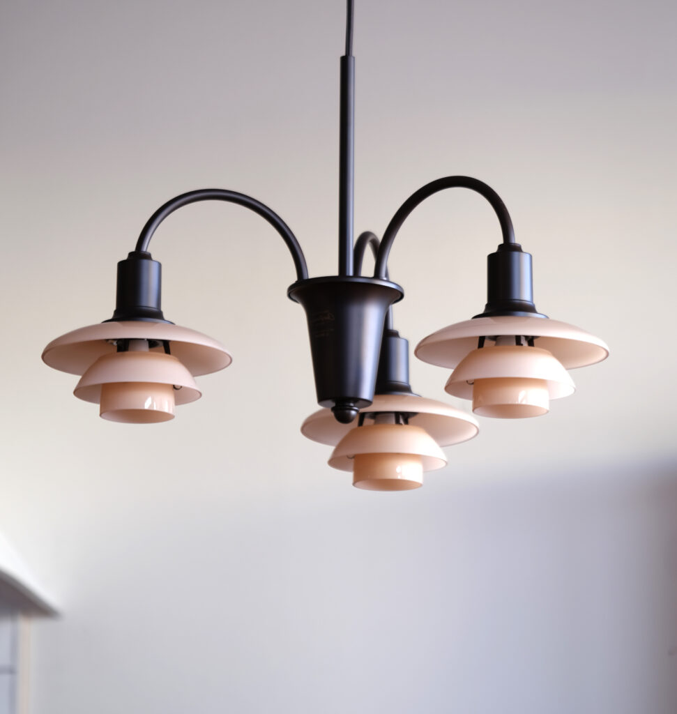 PH1/1(3灯)シャンデリア入荷。 2026年 デンマークルイスポールセンPH誕生100年を祝してセンテナリ―コレクション3灯が入荷します アームは真鍮エイジドブラス仕上げ、ガラスシェードはダスティーテラコッタ数量限定での販売です。